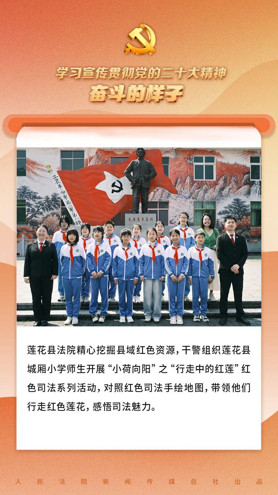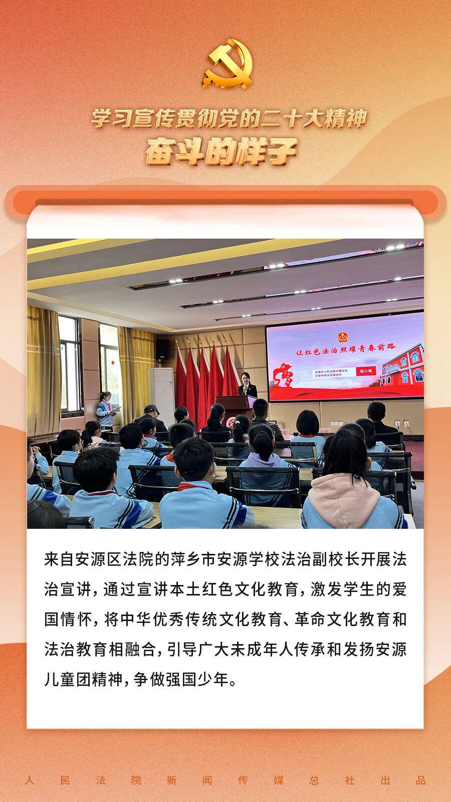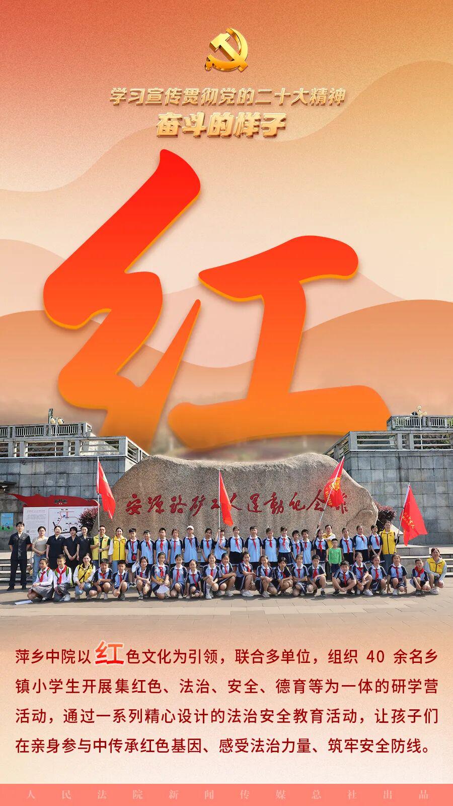 党的二十大论述指出,用好红色资源,真切开展社会目的中枢价值不雅宣传领会注解,深化爱国目的、集体目的、社会目的领会注解,效力培养担当民族恢复大任的期间新东谈主。江西省萍乡市中级东谈主民法院与辖区下层法院用好用活当地红色资源,推动红色规矩基因传承,开展“红色文化引颈法治少年行”专项举止,修复建强红色文化引颈的少年审判特点品牌,用规矩的温度呵护少年儿童健康成长。